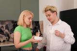 The scene starts in the kitchen with Molly trying to mix dough in a small cup. She stirs and stirs, but the mix just won't blend, and she looks a little annoyed and very cute. She taps the cup, shakes it, then sighs like she's tired of fighting it. Moon walks in and sees her struggling. He laughs and asks what she's doing. Molly smiles, a bit embarrassed, and shows him the cup. He laughs and tries to help her out, so she starts sucking his cock in return! That just goes to show that fucking is a lot more fun than baking!